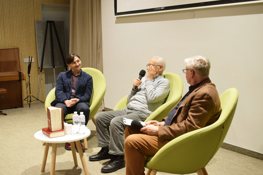 Учасниками розмови були перекладачі Андрій Содомора і Назар Ващишин, а також режисер ШТУКУ «На Симонових стовпах» Євген Худзик. Модерував декан Гуманітарного факультету УКУ Андрій Ясіновський.